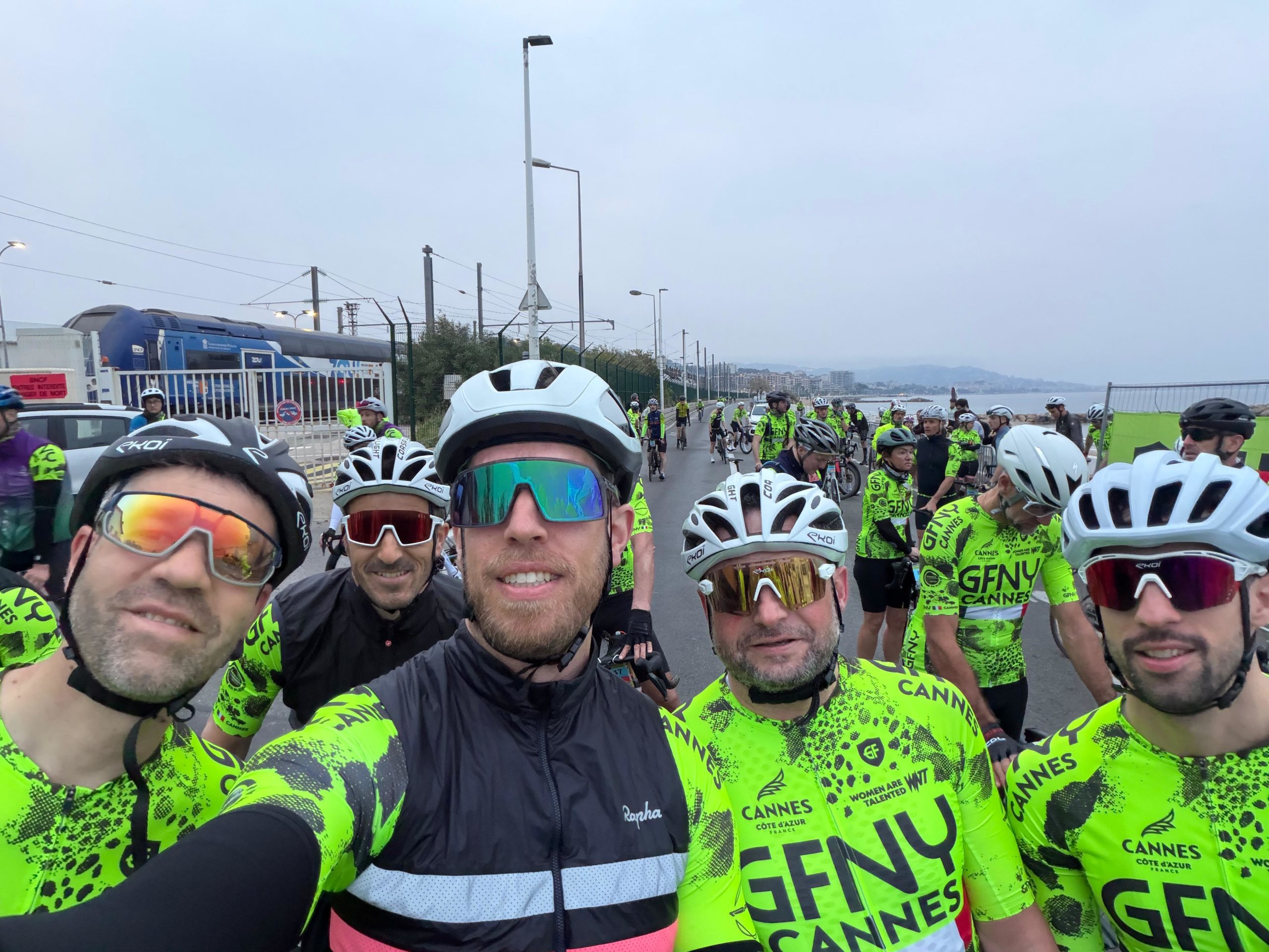 GFNY Cannes 2026 : cinq participants du RSCC au départ de cette cyclosportive azuréenne. Bruno, Justus, Franck, Pierre-Henri et Julien sont prêts à défier les 115 km et les quelques 2200 mètres de dénivelé proposés sur le long parcours cette année.